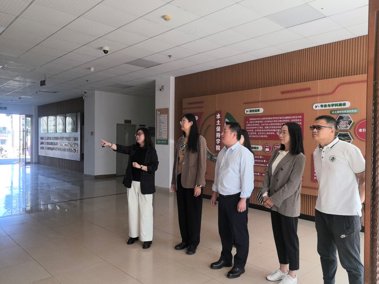 随后,调研团前往西南林业大学水土保持学院参观学习,在学院王妍院长陪同下,实地考察党建阵地、行政办公区、实验室及科研团队工作室,详细了解该院在学科建设、平台运行、党建与业务融合等方面的实践经验。
